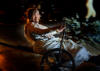 po placu wozy, rowery, hulajnogi, w niebo strzelają fajerwerki i