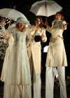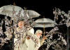 parasolkami w dłoniach między wieszakami imitującymi drzewa wiśni stanowiła