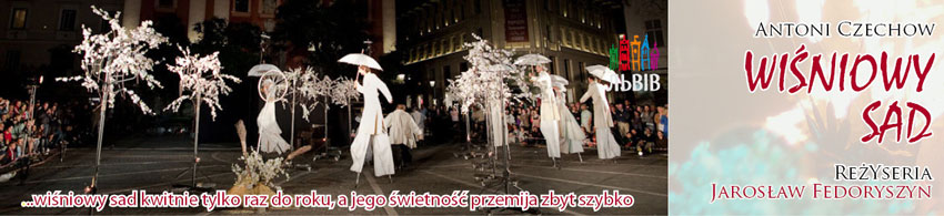 właśnie to przedstawienie było jednym z najciekawszych pokazanych na festiwalu. Reżyser skupił się przede wszystkim na przekazaniu obrazu świata marzeń i iluzji bohaterów dramatu Czechowa - stąd sceny z tańczącymi na szczudłach lalkami obok snu o szczęśliwym dzieciństwie właścicielki, spacery ubranych na biało i poruszających się na szczudłach mieszkańców dworu po kwitnącym sadzie, beztroskie zabawy plebsu. Ta