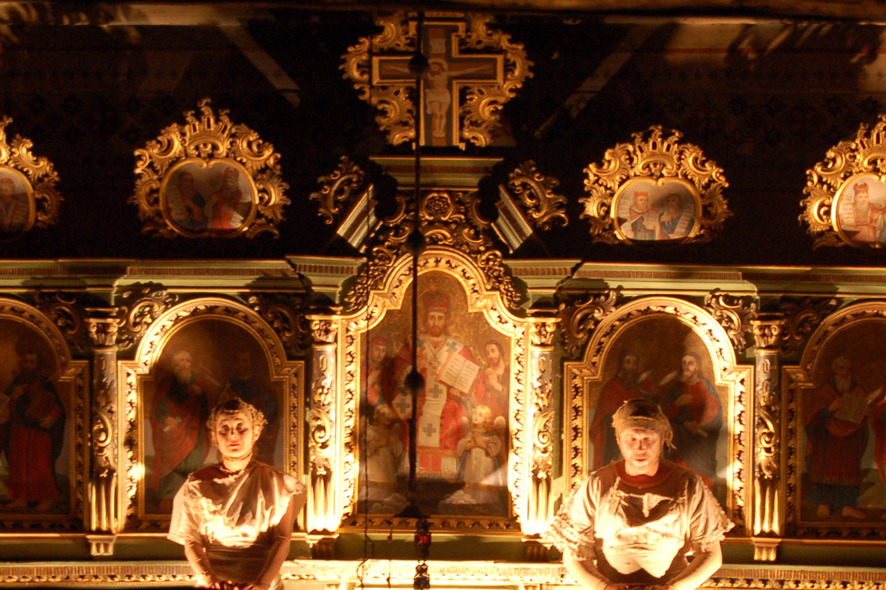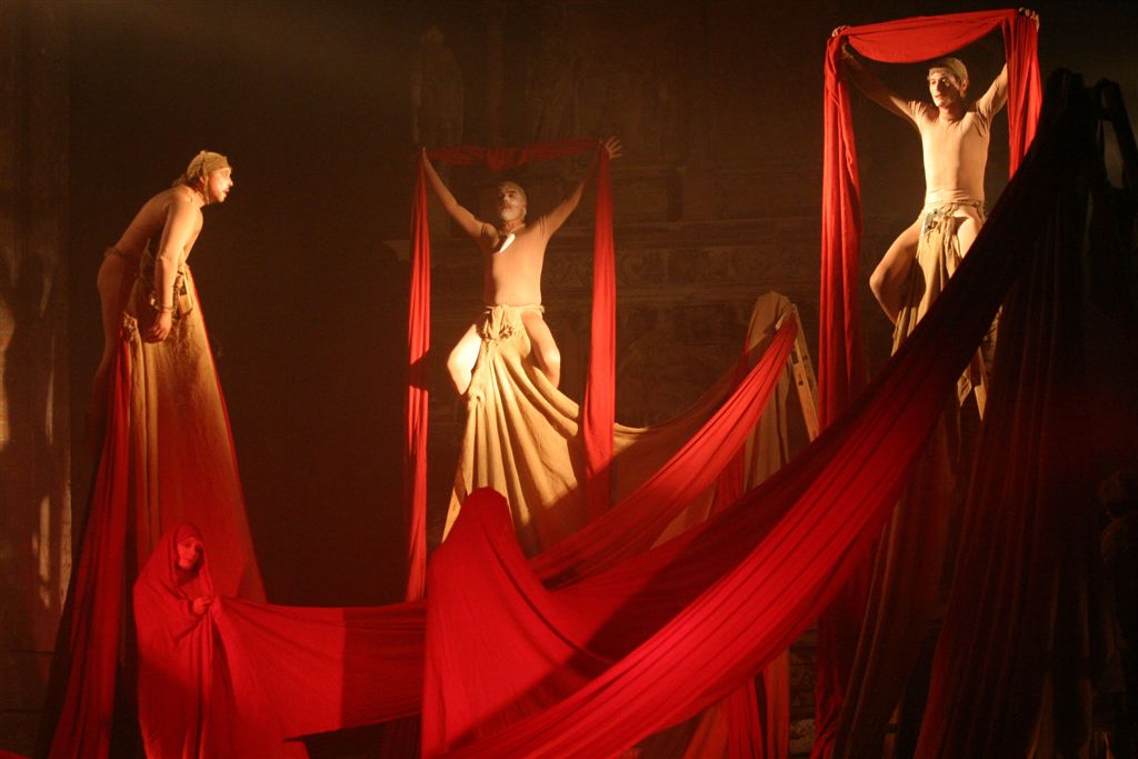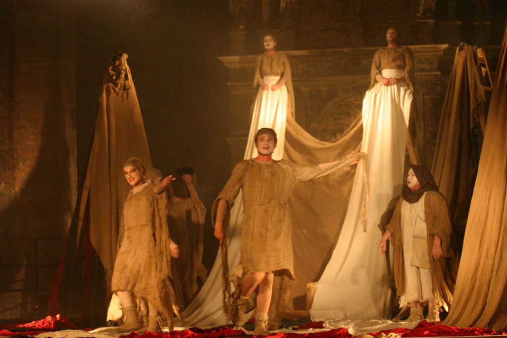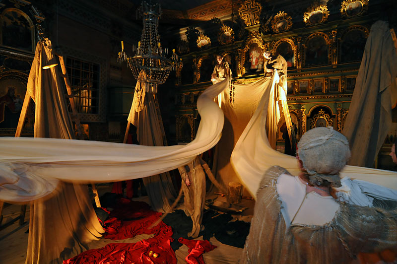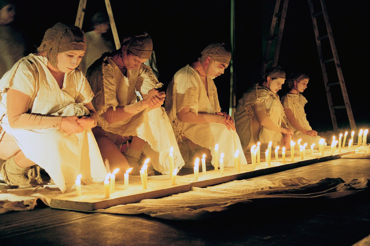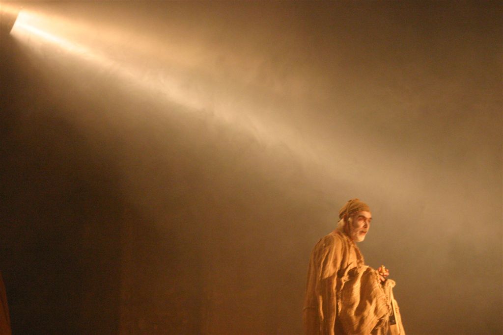 This unusual play is consisting of well-known biblical story and the story interpretation by young Karol Wojtyła, who experienced the cruelty of war and boundlessness of human suffering. The dramaturgy and the mood of performance are build from all theatrical devices. Splendid, expressive performance given by entire team and particularly by Pieter Mikitiuk as a Hiob is awarded standing ovation.Scenography, costumes and the incredible choral of the Orthodox Church music by Miron